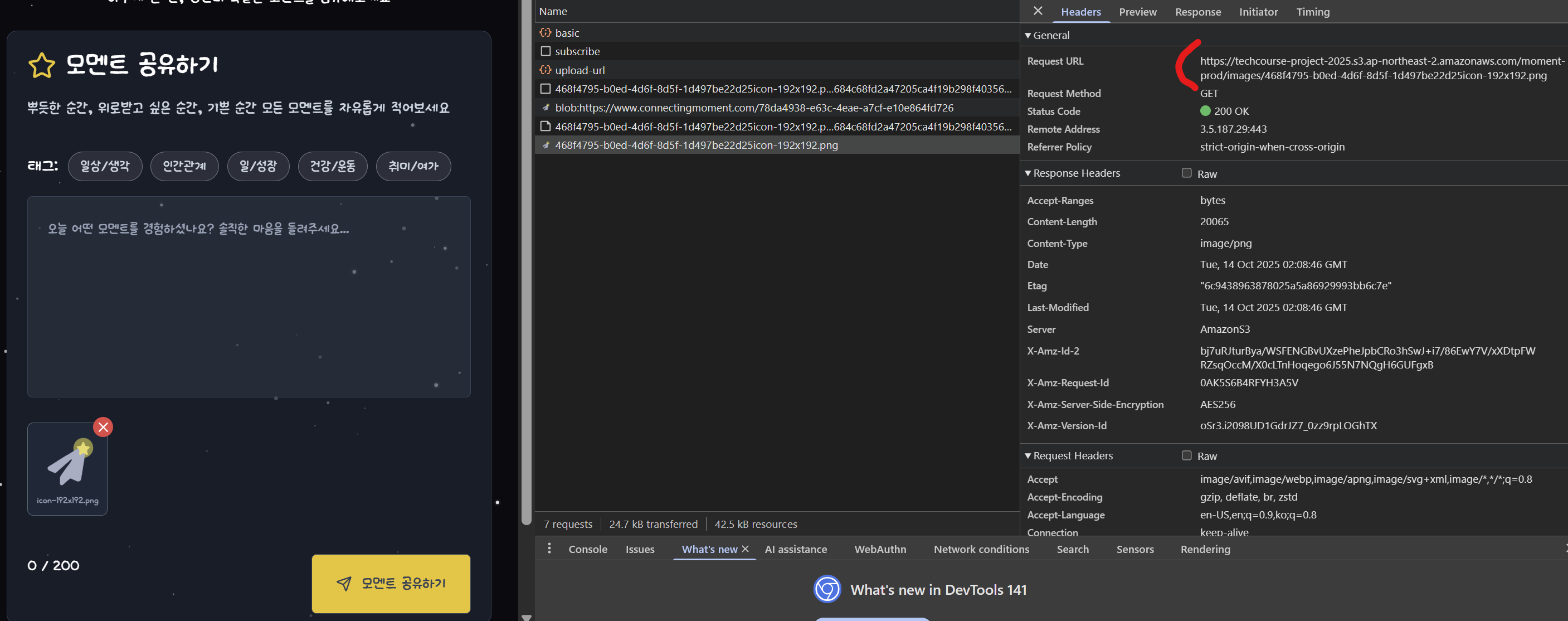 Client에서는 백엔드로부터 받은 PresignedUrl을 통해 S3에 업로드를 한다.