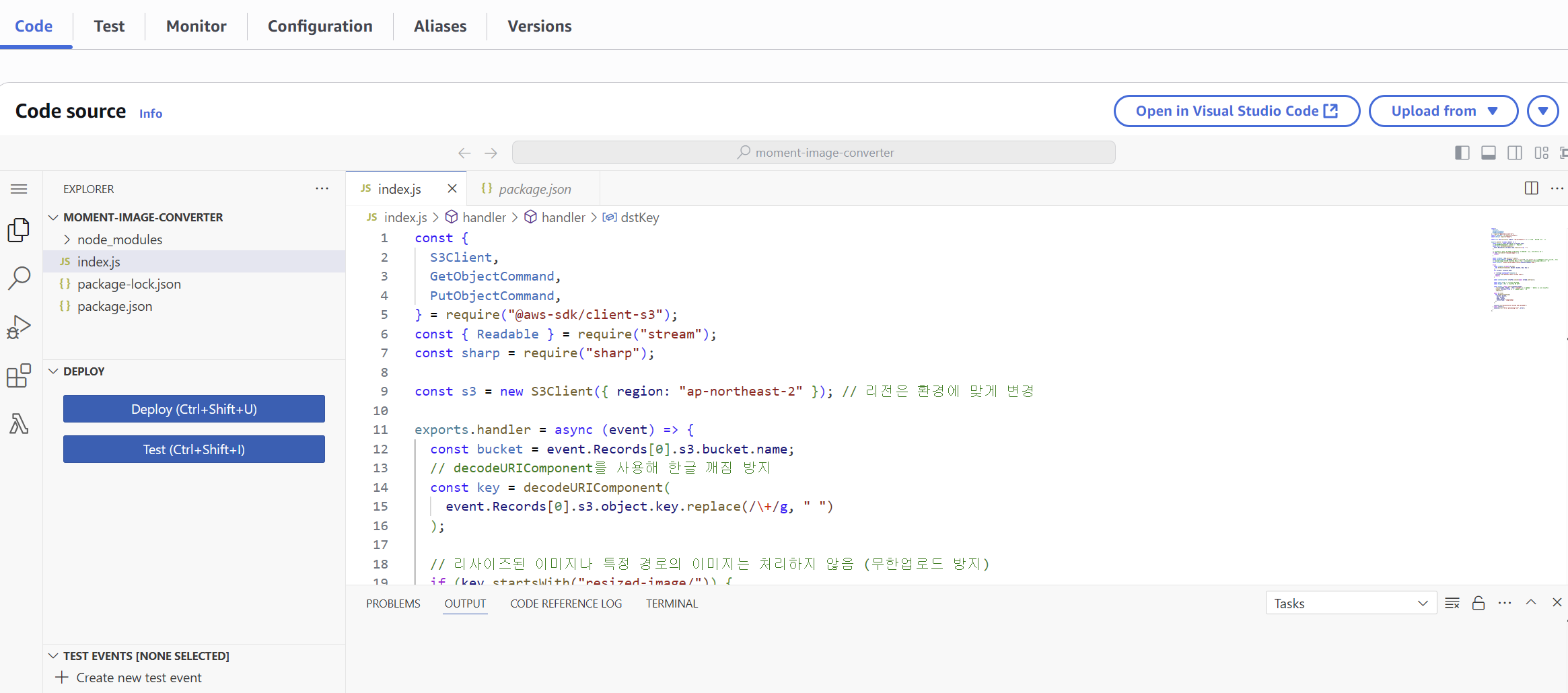 이후에 본인 로컬에서 sharp 라이브러리를 설치하고 해당 파일들을 Zip으로 압축하여 Lambda .Zip file을 Upload하였다.