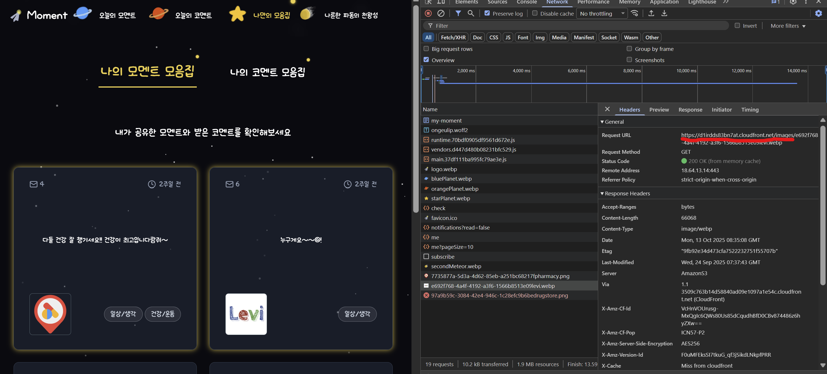 실제 URL로 바꾸면 브라우저/CloudFront에 캐시가 잡힌다. 동일 리소스 재요청 시 속도 향상.